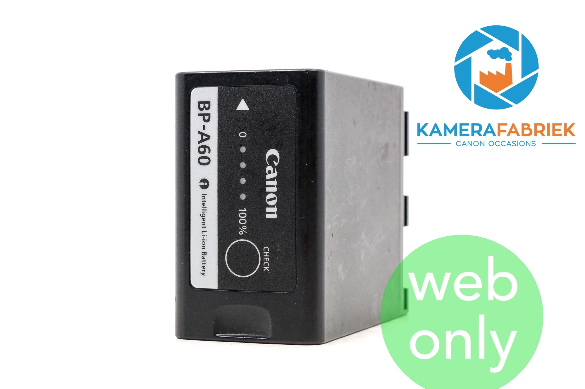 De Canon BP-A60 accu is een oplaadbare lithium-ion accu met een capaciteit van 5200mAh. Met de drukknop op de accu check je eenvoudig en snel de resterende capaciteit.